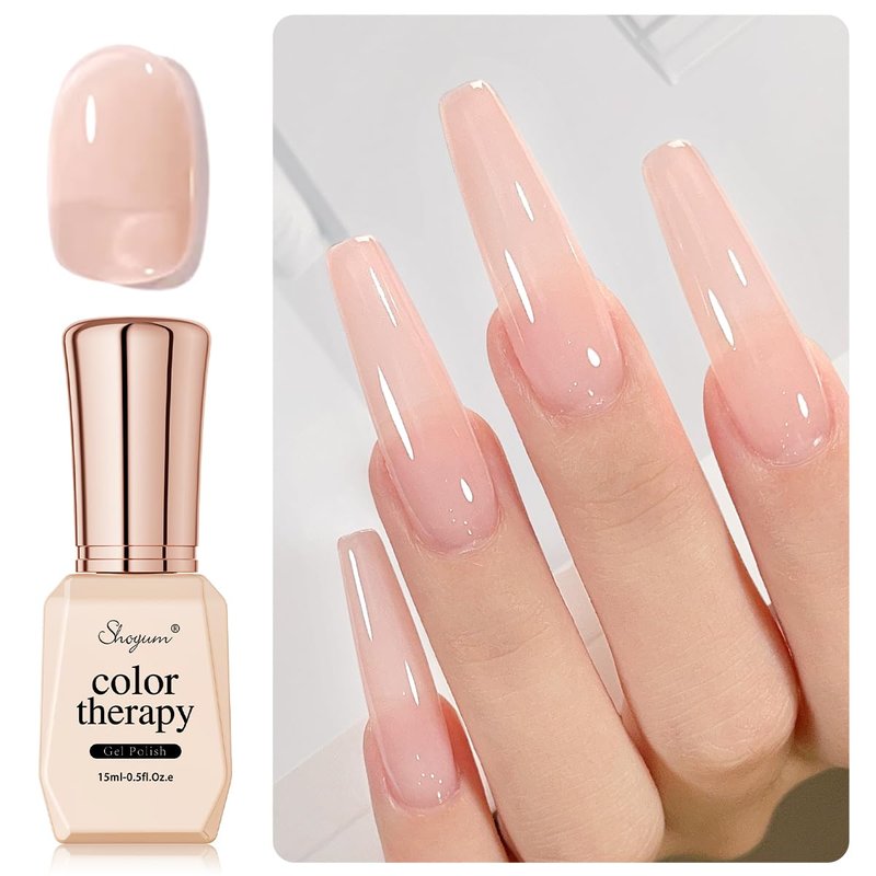 SHOYUM Sheer Nude Gel Nail Polish, 15ml Neutral Jelly Pink Color Soak Off UV Light Cure Gel Polish for Nail Art DIY Manicure at Home