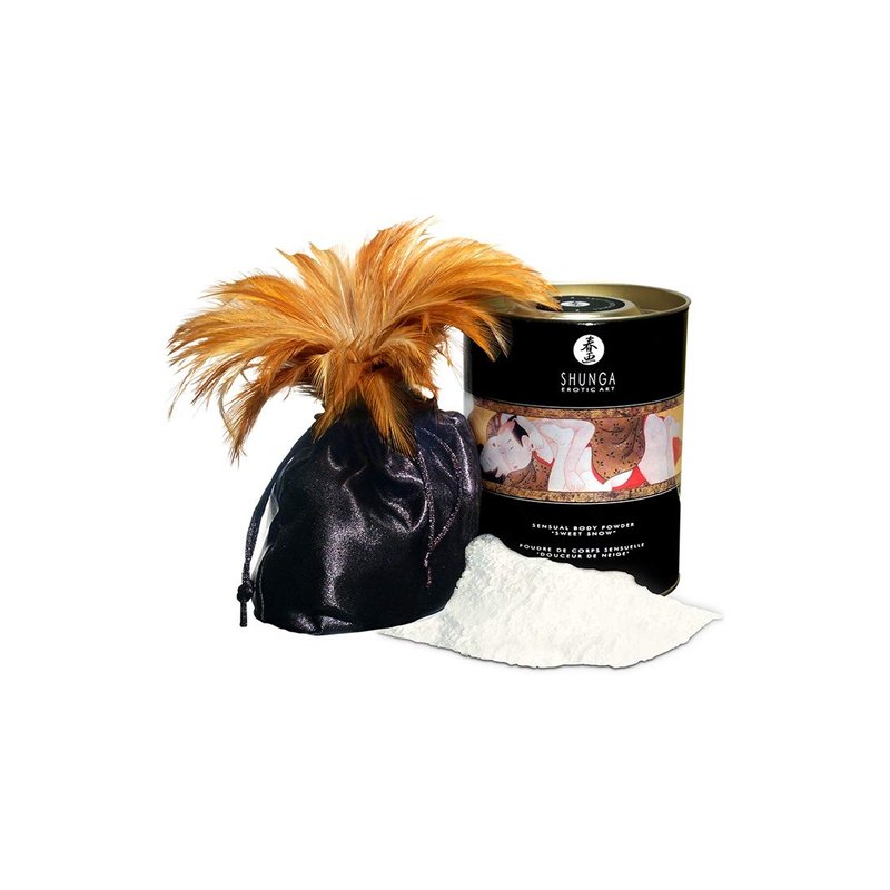 - Shunga Erotic Art Sweet Snow Sensual Body Powder is available in five different flavors: Blazing Cherry, Raspberry Filling, Exotic Fruits, Honey of the Nymphs and Strawberries and Champagne
