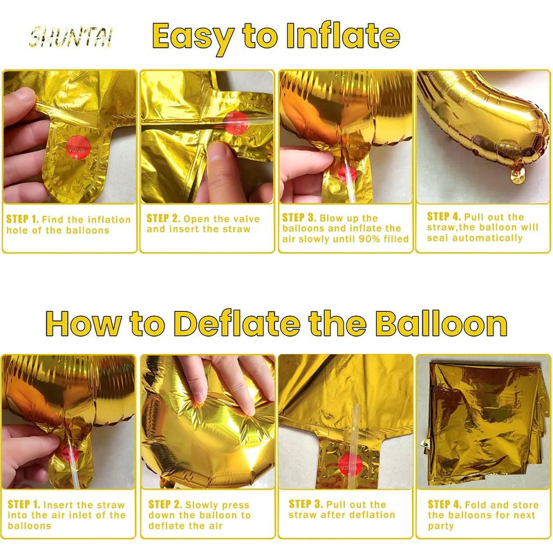 - Selfsealing and reusable:You can inflate the big number and letter balloons using a straw and ribbons to hang them.our number and letter banner balloons can be selfsealing after inflated withoutextra tying with your fingers. After party please use straw to export theair for reuse