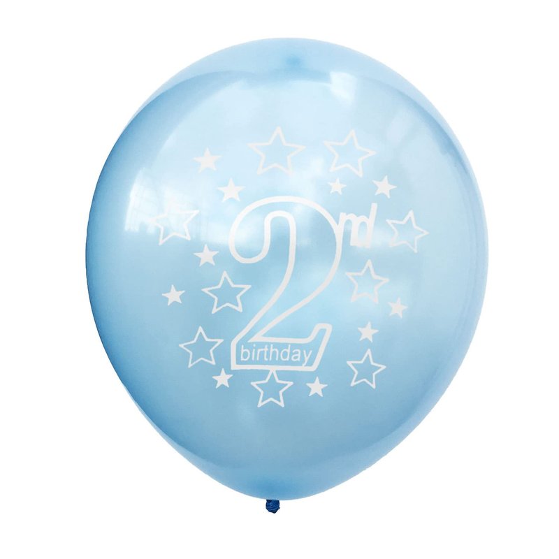 - Package:5 pieces 12 inch navy blue latex balloon printed with the words "2nd Birthday" 5 pieces 12 inch light blue latex balloon printed with the words"2nd Birthday"5 pieces 12 inch blue confetti latex balloons,coming with 1 roll ribbons