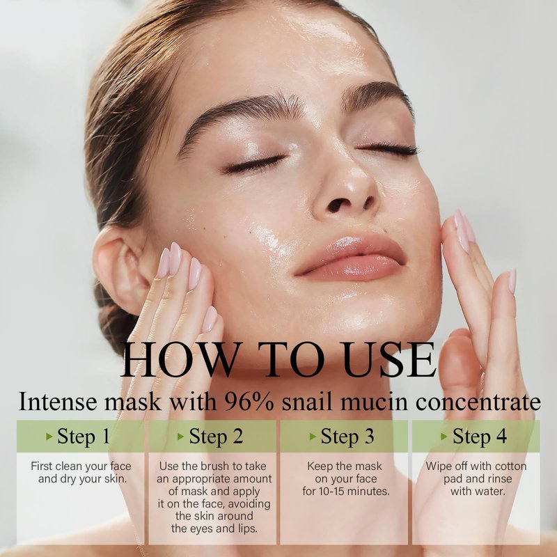 - 【CRUELTY-FREE SNAIL MUCIN】Our snail jelly mask is obtained through a sustainable and ecological approach. No snails are harmed during the entire process, and optimal mucin production occurs when snails are well rested and comfortable in their habitat. So you can use our premium snail mucin mask without any worries