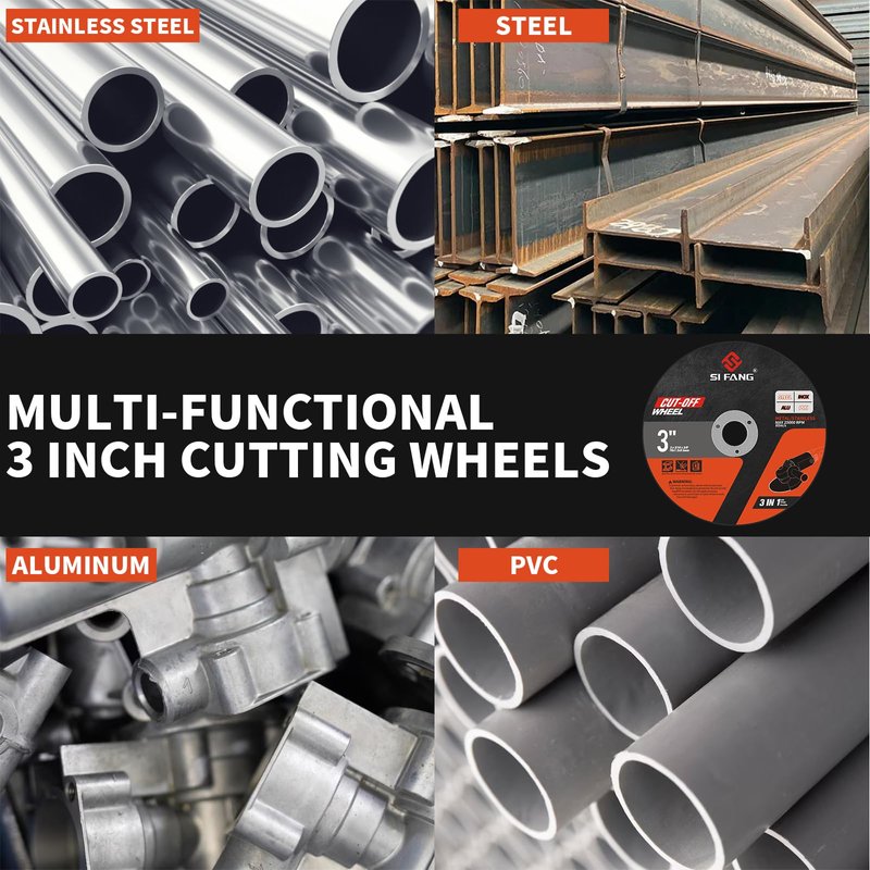 - 【Multi-Applications】The SI FANG Die grinder cutting discs has strong aggressiveness for super-fast burr free cutting on metal, iron, steel, stainless steel, fiberglass, aluminum and plastic, including steel pipe, structural steel rebar, galvanized steel, sheet metal, structural tubing, other ferrous metals and non-ferrous metal,PVC.
