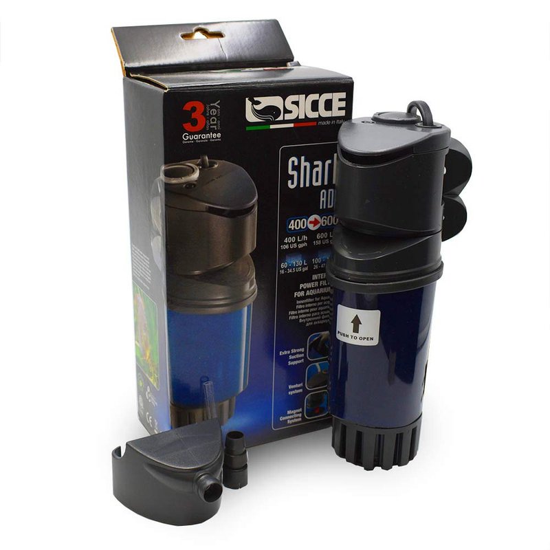 - FISH FRIENDLY: The Shark ADV Internal Filter contains an adjustable intake diameter to protect small fish. It is equipped with a transparent mechanical filter body for easy control of clogging level.