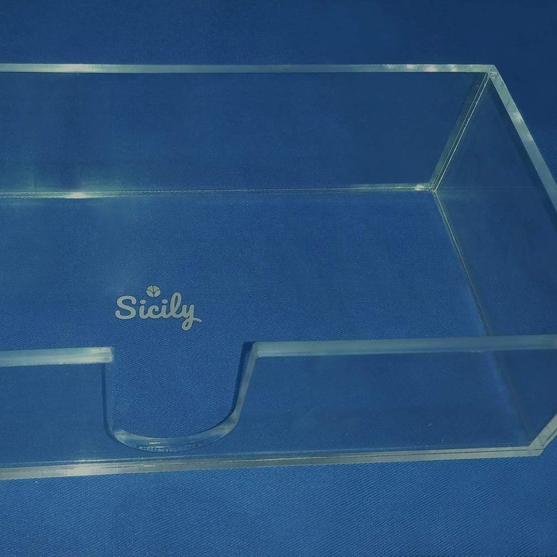 - SLEEK AND DURABLE 5mm Acrylic is impact-resistant and blends seamlessly with any room decor. This Sicily paper towel dispenser countertop RESISTS YELLOWING over time and has PROTECTIVE PADS on the base to Protect your Countertops. Crystal-clear Acrylic paper towel holder showcases Multi-fold and Decorative paper hand towels and can be hand washed with soapy water to maintain its crystal-clear elegance.