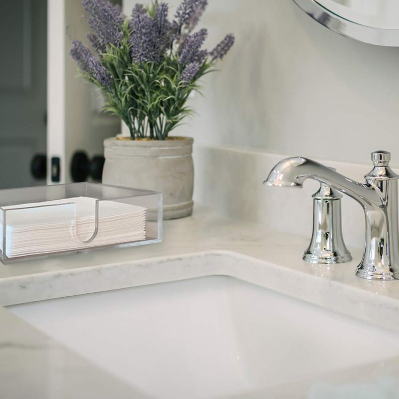 - WELCOME GUESTS STYLISHLY with this Acrylic Guest Towel Holder tray for the Bathroom, Kitchen or Special Event. Good hygiene is now CONVENIENT for family and guests and ECONOMICAL for you. Napkin holder or paper towel dispenser for bathroom helps keep your area tidy and organized. Family and Guests will appreciate a Bathroom Napkin Holder that provides Clean Disposable Multifold, Zfold or Cfold hand towels at their fingertips.