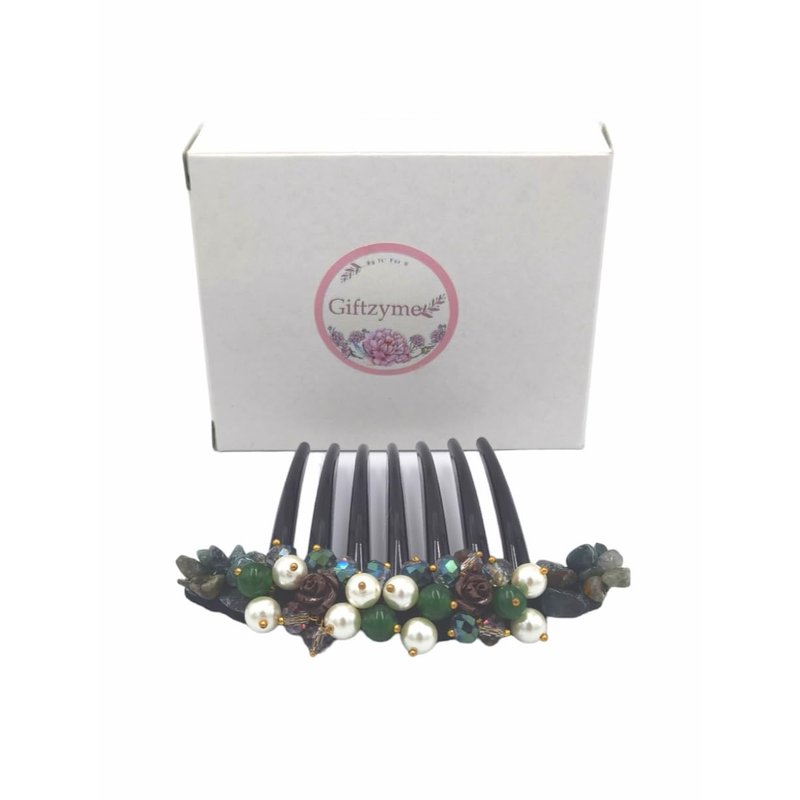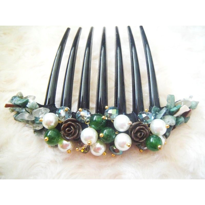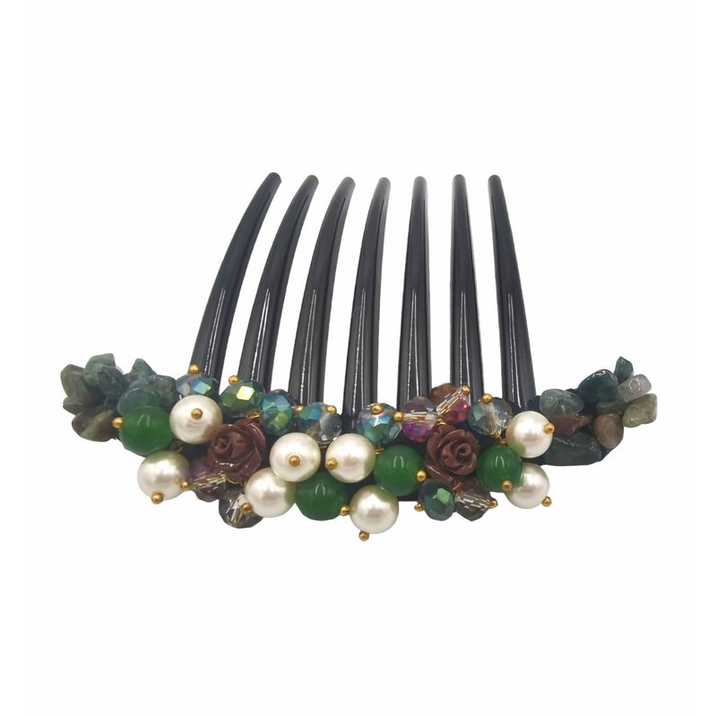 Side Comb Hair Accessories French twist hair comb Ornamented along the top of the heading with Pearl & Stone (Green)