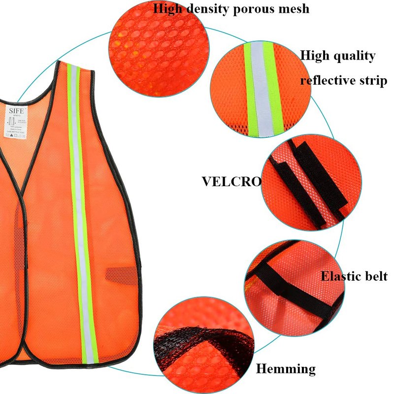 SIFE 10 Pack High Visibility Reflective Safety Vest,Made from Breathable and Neon Orange Mesh Fabric,light weight for Man and Woman