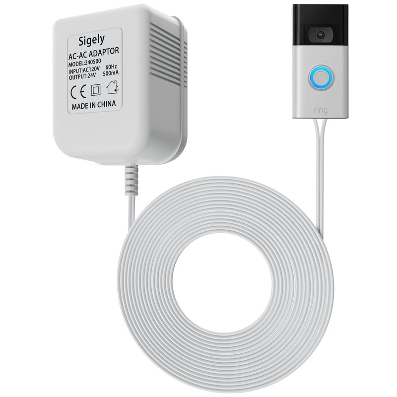 SigeIy Doorbell Transformer 24V 500MA Doorbell Power Adapter AC110-120V to AC24V, Compatible with Ring, Nest, Eufy, Wyze, Arlo Visual Doorbell (with 32.8ft Cable White)