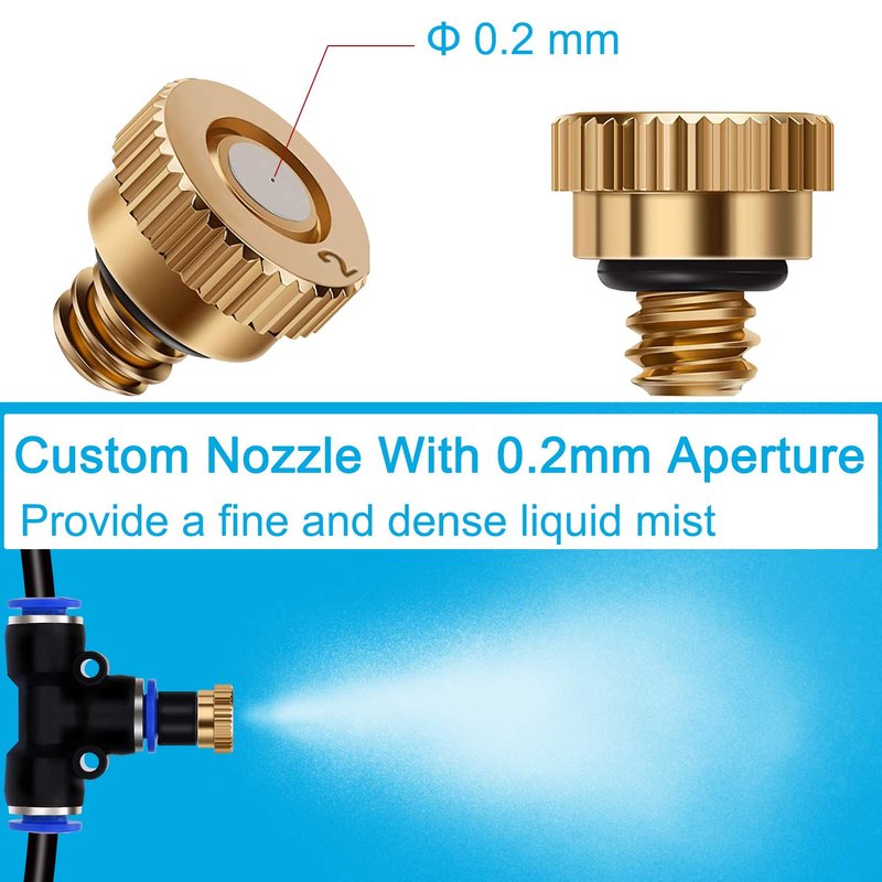 - EASY TO DIY - This misting fan kit is completely pre-assembled,just need to connect to any standard garden hose.Includes 3 additional misting nozzle plugs for low flow mist option,your idea of your own misting fan can be realized in only 1 minutes (DOES NOT INCLUDE FAN).