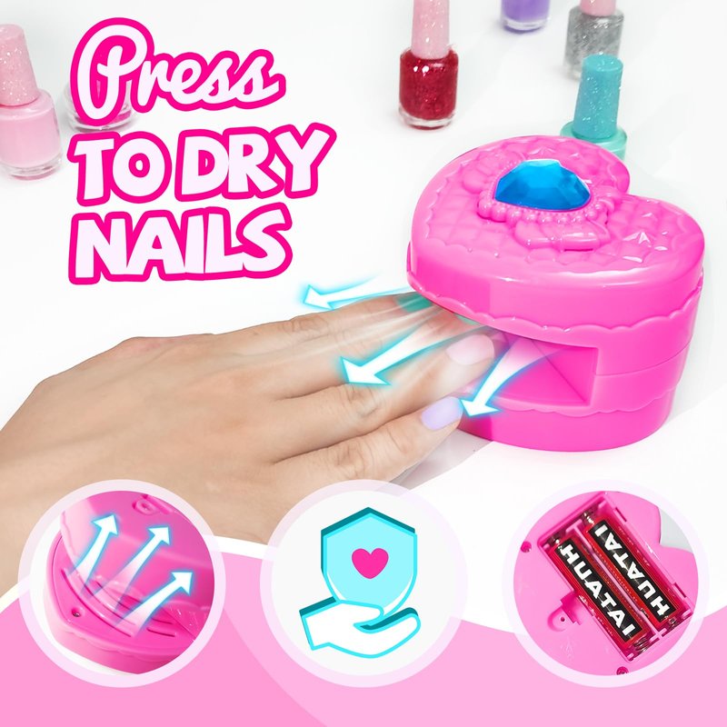 - 🌈Mini Heart shaped Nail Wind Dryer: Mini nail dryer is easy to operate,Simple put your finger in the nail dryer,just press down, your nails will be formed within 15 seconds by warm wind. user-friendly design keeps your kids away from danger. Requires 2 AAA batteries (not included).