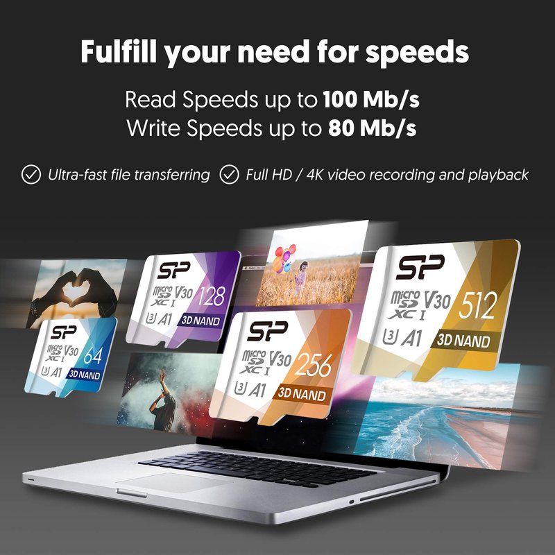Silicon Power 512GB Micro SD Card U3 SDXC microsdxc High Speed MicroSD Memory Card for Steam Deck, Nintendo-Switch, DJI Pocket 3 and Drone