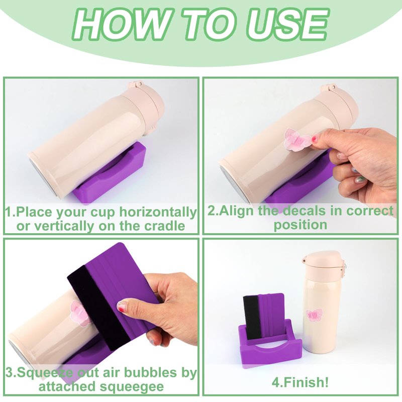 Silicone Cup Cradle for Tumblers,2 Pack Tumbler Holder for Crafts with Built-in Slot and Felt Edge Squeegee,Small Cup Cradle Use to Apply Vinyl Decals,Anti-Skidding Tumbler Stand Cup Holder