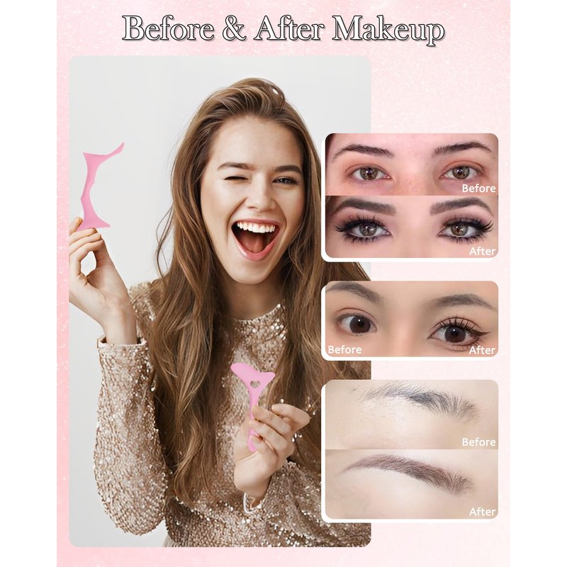 - EYE MAKEUP TOOL SET - You'll get a multi-functional eye makeup aid kit, which includes 1Pcs 5in1 eyeliner aid and 1pcs 6in1 eyebrow stencils aid. Two eye stencils for most people's eye makeup designs, meet most eye makeup styles, and the large arc can adapt to various eye contours. They can draw clean and precise winged eyeliner and perfect eyebrow shape, allowing you to create a symmetrical, three-dimensional look.