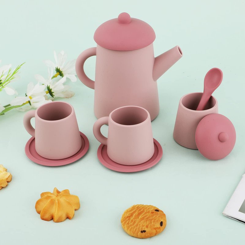 - Premium Material: Made of quality silicone, our tea set toy is BPA free, not easy to bend or break, soft, flexible, reliable and durable for a long service time. It can be used with confidence. Tip: please wash it with boiled hot water before use.
