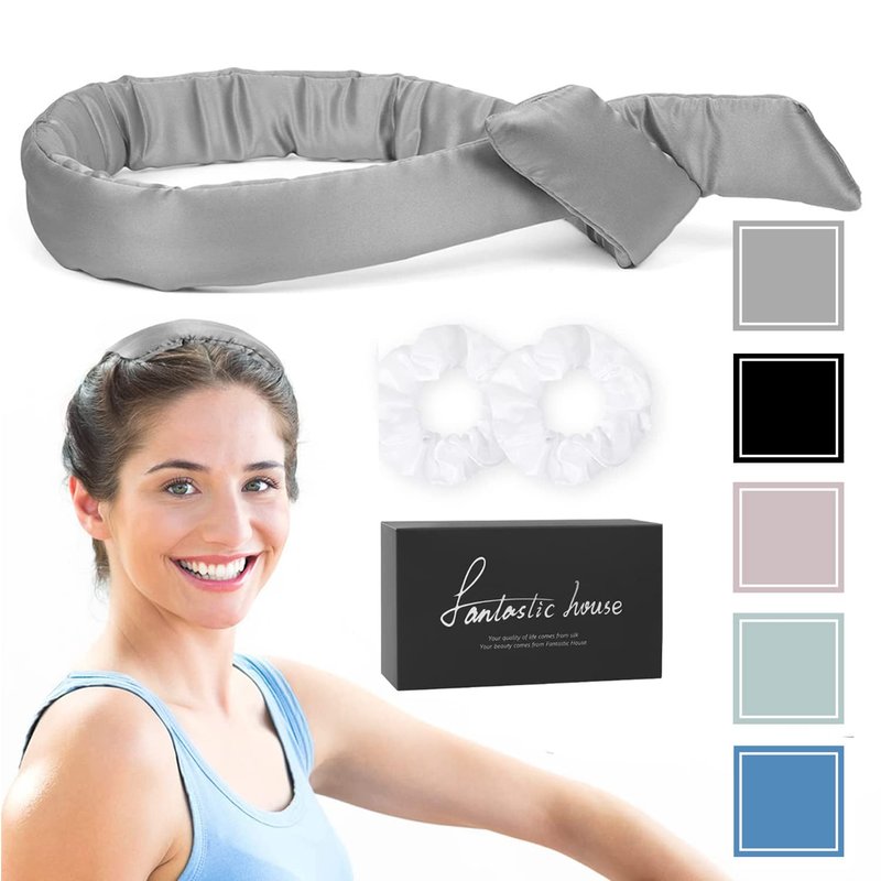 Silk Heatless Hair Curler,Mulberry Silk Overnight Heatless Curls Headband——No Heat Silk Hair Curlers to Sleep In,Heatless Hair Curler for Short Hair & Long Hair (Hair Curler+2 Hair Scrunchies) Grey