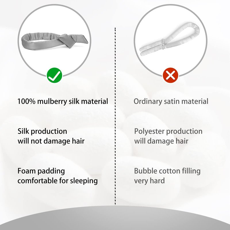 - 【New Upgrade Silk Heatless Hair Curler】Our new silk heatless hair curler with pure cotton filling, has no shaping strips, so you don't have to worry about hard objects hurting your head. When out and about, this heatless curling iron not only looks as pretty as a headband, but it also collects long hair. Everyone will compliment your hair and elegant demeanor.