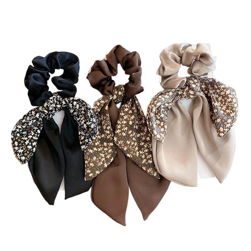 - Package Include: The bow hair scrunchies have 3 pack, 3 colors: black, beige and coffee, various colors can meet your various clothing matching needs, and the flower give the extra touch to outfits make you look perfectly sweet