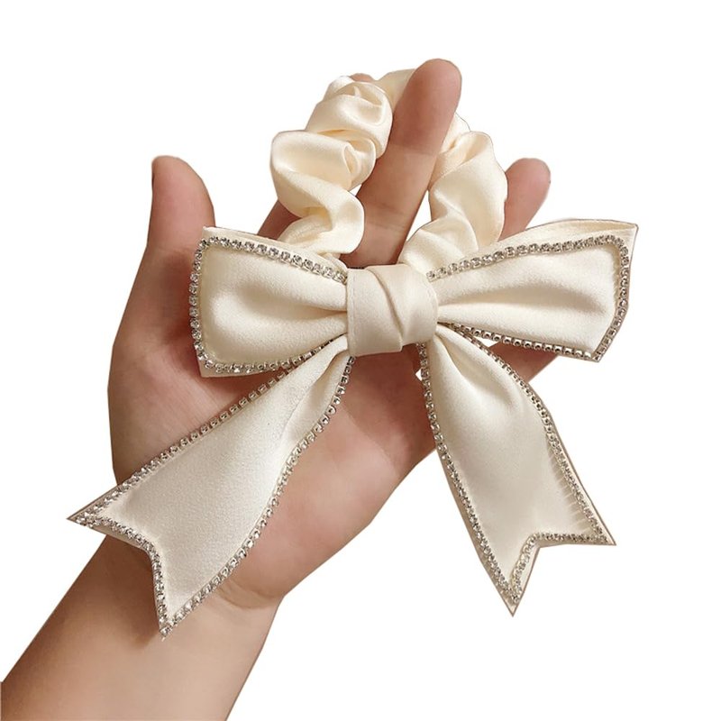 Silk Scrunchies with Bow, Silk Scrunchies with Crystal Bow, Cream Scrunchies with Bow, Crystal Bow Scrunchies for Hair Crystal Bowknot Hair Scrunchies for Women Ponytail Holder Hair Ropes with Bow