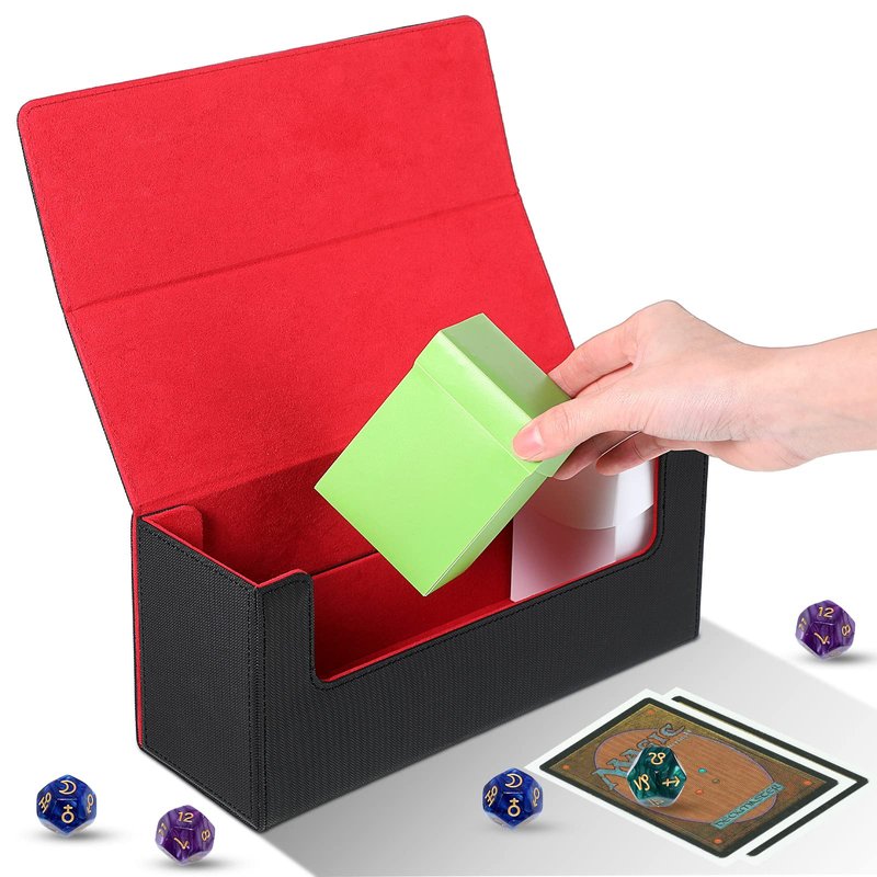 Silkfly 6 Pieces Deck Card Storage Box, 1 Leather Deck Case with 5 Plastic Decks Card Boxes Playing Deck Cards Box Compatible with MTG TCG Commander Card (Black and Red)