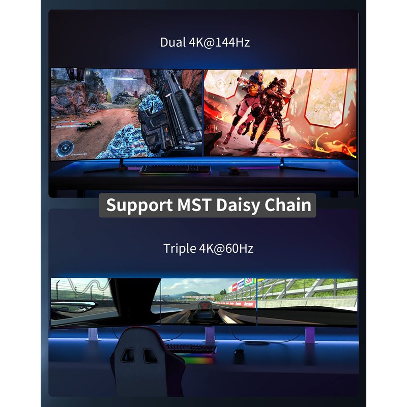 Experience the thrill of multi-screen gaming with MTS multi-stream transmission. This is your all-in-one DisplayPort cable for the next decade. with no buckle design+groove design. Say goodbye to accidental damage. Suitable for Graphics cards and monitors with Displayport ports.