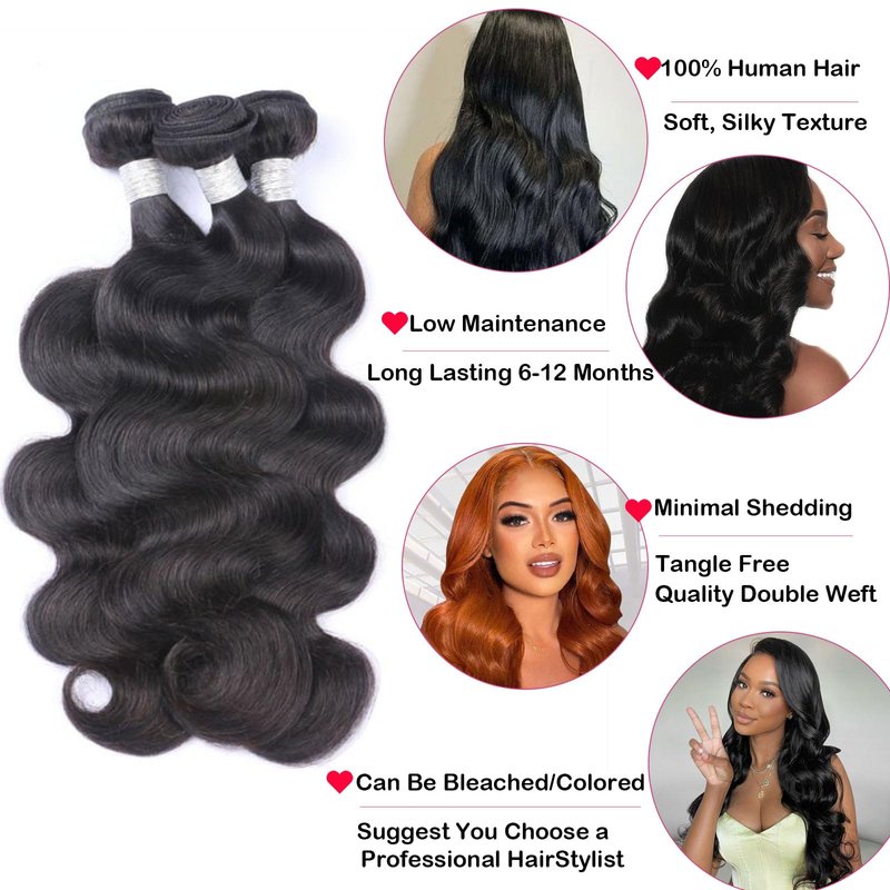 - 100% Unprocessed Brazilian Virgin Hair--SilkSleek body wave hair bundles, are crafted from the finest quality Brazilian human hair, renowned for its unparalleled softness, durability, and natural shine. Each bundle is meticulously selected to ensure it is free from any chemical treatments, ensuring you enjoy long-lasting, healthy sew-in bundles human hair.
