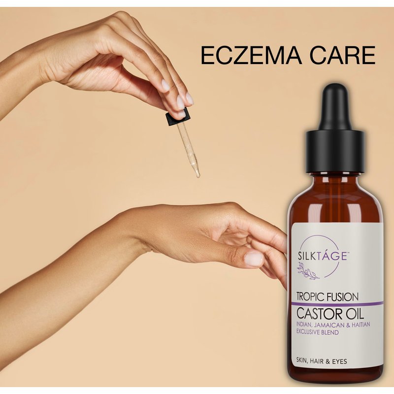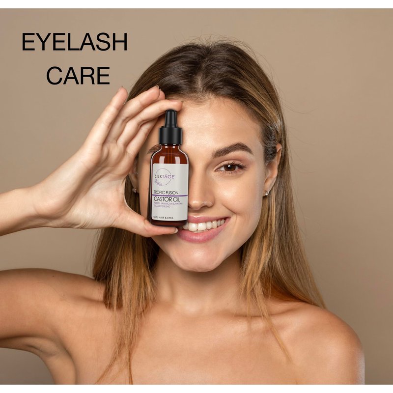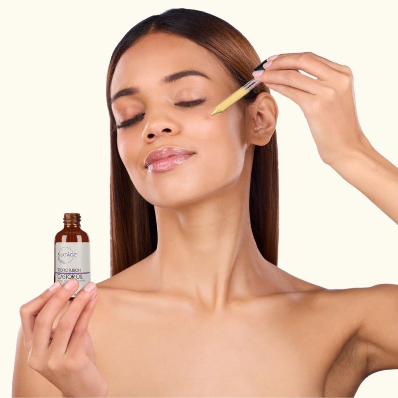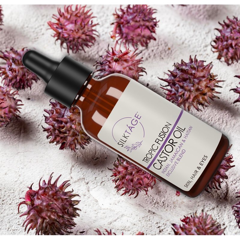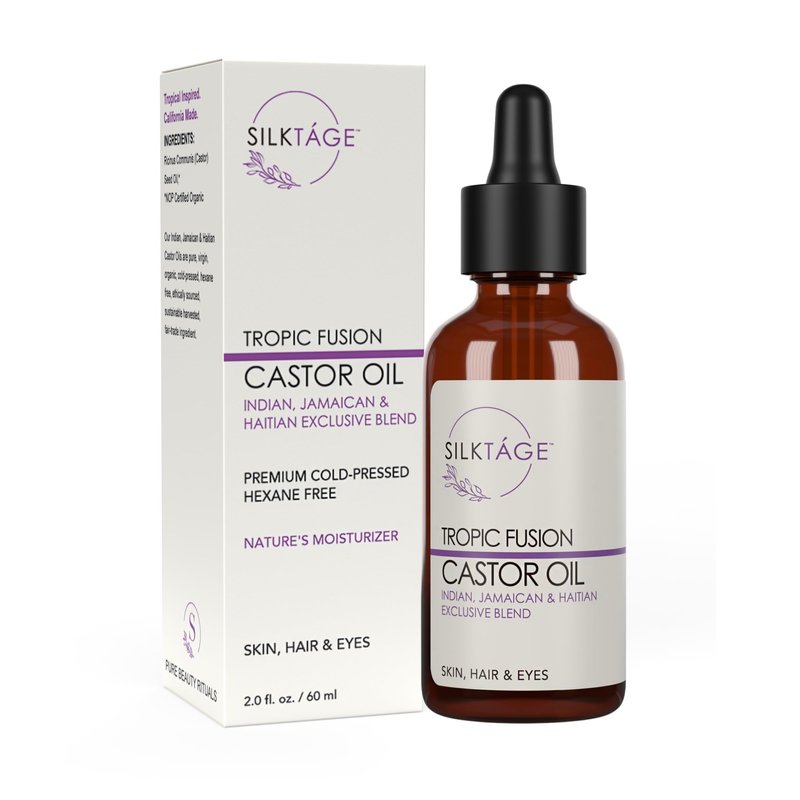 SILKTÁGE Tropic Fusion Castor Oil - Organic Indian, Jamaican, and Haitian Blend. Pure, Cold Pressed, Hexane Free, skin moisturizer, grow healthy hair & eyelashes 2.0 Fl Oz
