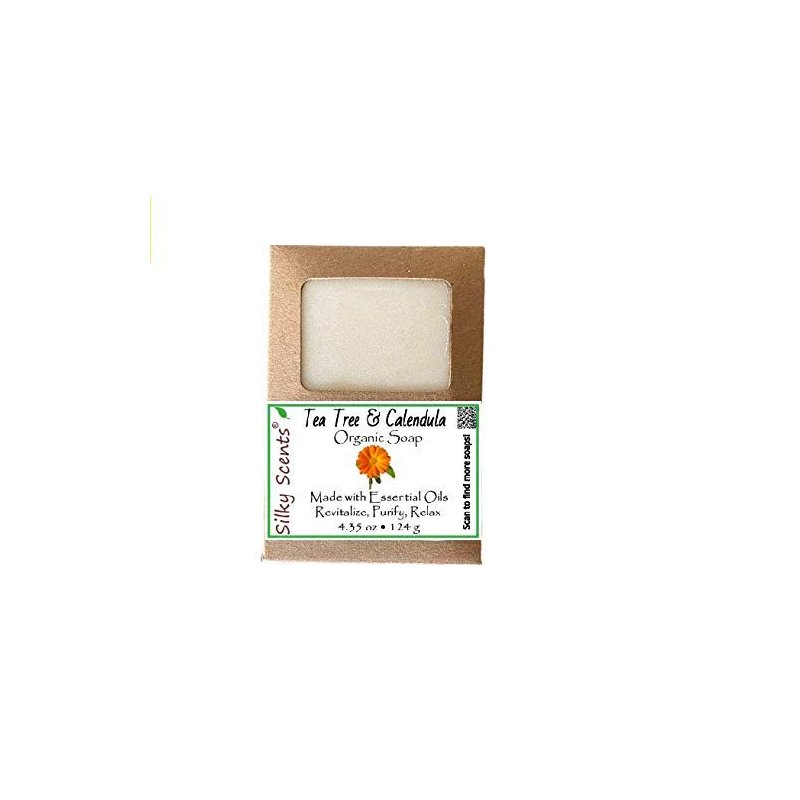Silky Scents Tea Tree & Calendula Soap Bar - 100% All Natural and Organic Infused with Essential Oil - 1 Soap Bar