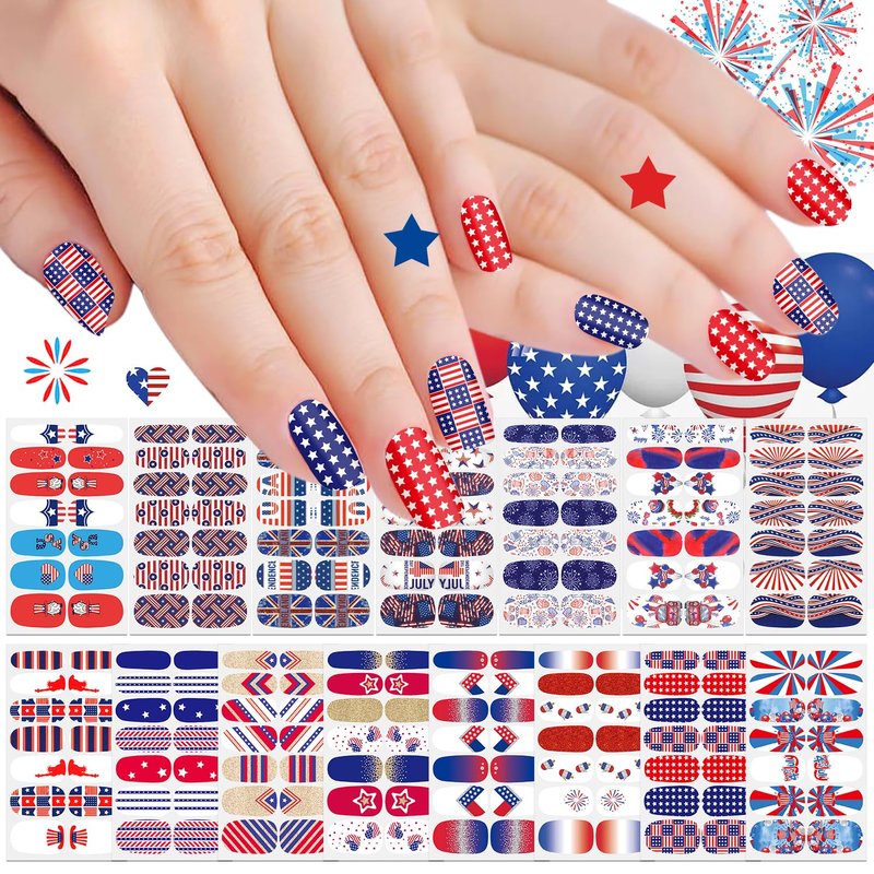 - Easy To Use - our 4th of July nail wraps possess good adhesion, easy to be applied on your nails, very convenient, just tear off the nail polish strips and stick on your nail, also easy to remove by peeling it off, friendly to beginners, you can apply a layer of nail polish to seal if you want to keep a long time.