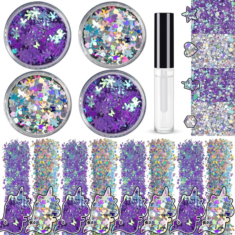 - You Will Receive: 4 pots of cosmetic glitter with 8g/0.28oz, quite enough for mutiple times deco, also, free 5ml quick dry glitter glue gel is included