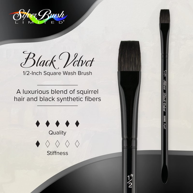 Silver Brush Limited 3008S1/2in Black Velvet Square Wash Watercolor Paint Brush, Size 1/2 Inch, Short Handle