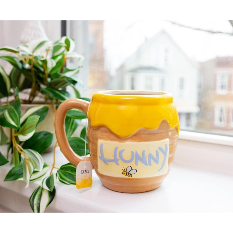 - 3D SCULPTED HONEY POT: Uniquely designed mug features a 3D sculpted honey pot with Pooh on the front and the words “Hunny” written on the back. It holds 23oz of your favorite hot or cold beverage, or makes the perfect collector’s item to store loose change, pens, etc.