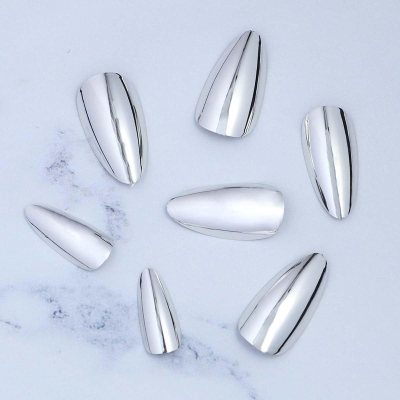- 【Widely Application】Instead of spend lots time and money at nail salon, you can change your nails style in anytime and anywhere.Our acrylic fake nails are suitable for dating, party, shopping etc. Sliver press on nails is also a exquisite gift for your partners, family and friends.