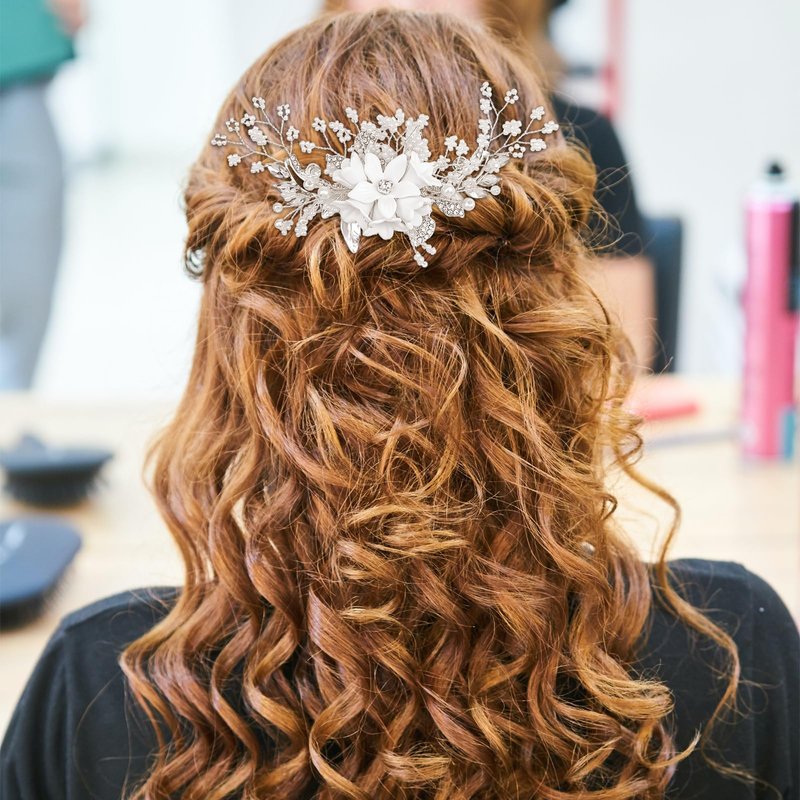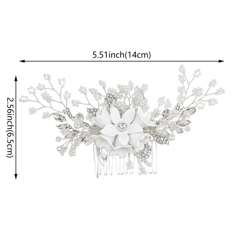 - 【Package Include】1 pcs flower pearl crystal rhinestone hair comb (silver).