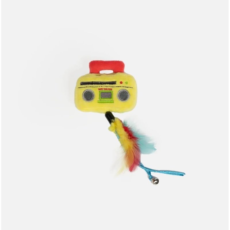 Silver Paw Lush Stereo Cat Toy Plush Music Radio Boombox w/Feathers String & Bell