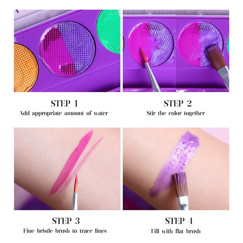 - Easy to Use and Wash Off:Apply to the eyelid or body by using some water on a brush to activate the compressed powder. Using a wet makeup brush to mix product until it reaches a creamy consistency. You can get rid of the look by simply washing the makeup off with warm water and soap.