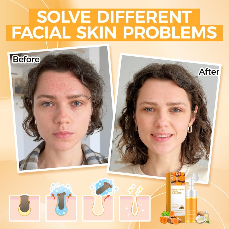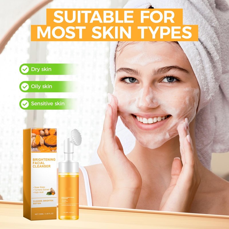 - SUITABLE FOR ALL SKIN TYPES: Our turmeric face wash with brush is designed for daily use; Whether your skin is oily, dry or sensitive, this turmeric cleanser is perfect for you; Also, it is perfect as a gift for birthdays, Christmas and Valentine's Day.