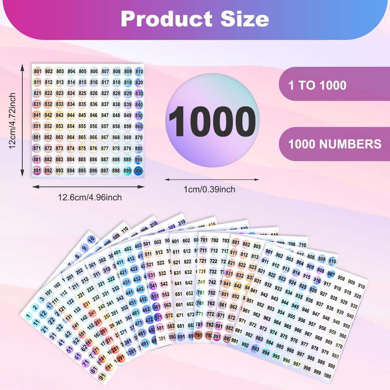 - 【Number sticker set】You will receive 10 sheets of reflective round reflective laser number stickers, a total of 1000 pieces round number stickers, each sticker is 10mm in diameter, arranged consecutively from 1 to 1000, help you number something and organize life.