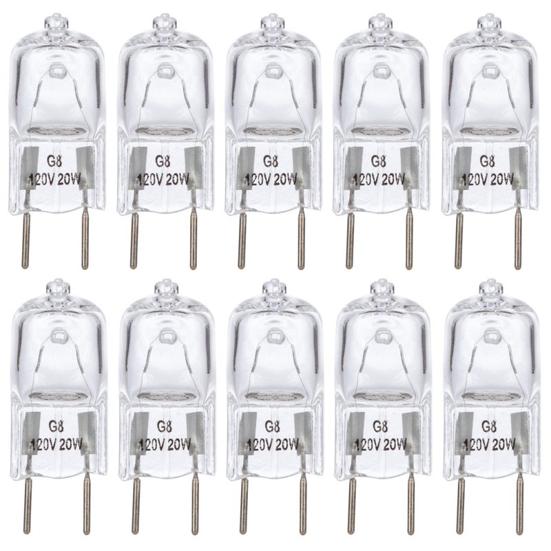 Simba Lighting Halogen Light Bulb G8 T4 20W JCD Bi-Pin (10 Pack) Shorter 1-3/8" (1.38") Length for Under Cabinet Puck Lights, Kitchen Hood, Landscape Lights, Desk Lamps 120V Dimmable, 2700K Warm White