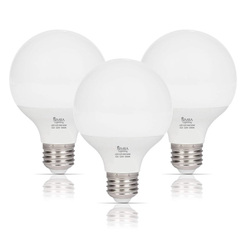 Simba Lighting LED Vanity Globe G25 (G80) Light Bulb for Bathroom, Makeup Mirror | Decorative White Frosted Cover, 8W, 60W Equivalent, 120V, Standard E26 Medium Base, Daylight 5000K, Pack of 3