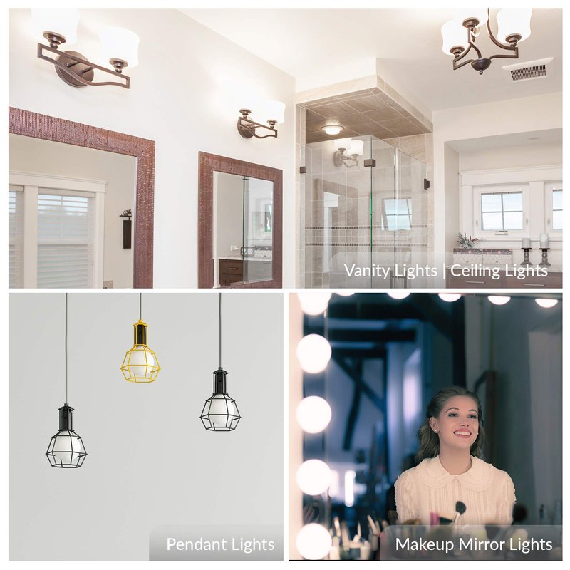 • MANY LIGHTING APPLICATIONS: Globe Shape Round Light Bulbs are Great for Vanity Lighting, Makeup Mirrors, Bathroom, Pendants, Ceiling Lights, Chandelier, Desk Lamps in Homes and Offices