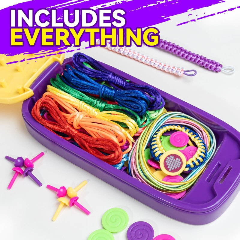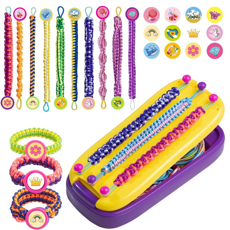 - Friendship Bracelet Making Kit: Hold it, knot it, and tie it - in 3 easy steps, you'll make your own bracelets! Simfunso bracelet kit for girls aged 7, 8, 9, and 10, complete with 1 braiding loom, 15 colorful threads, 15 extensible braiding rings, 15 button closures, 1 fashion sticker, and pins. All bracelet parts fit into the portable bracelet loom, allowing kids to carry it wherever they go and play.