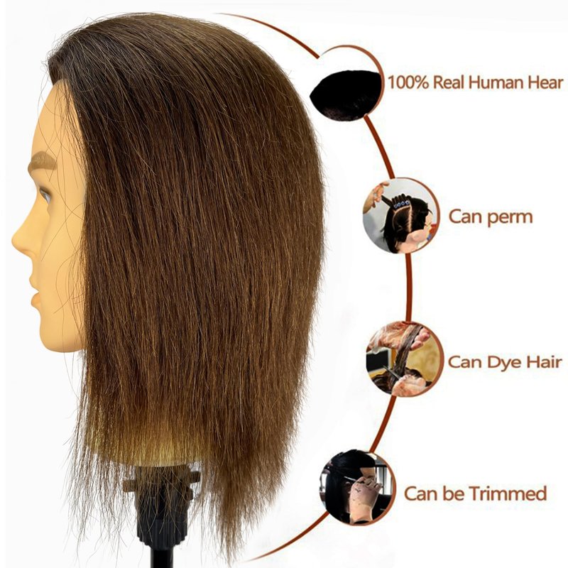 The Male Mannequin Head with Beard,The workmanship is of good quality and can be blown, cut, dyed,Training Head,100% Real Human Hair for Hairdressers Manikin Head for Hair Styling and Practice,Hair Stylists,Cosmetologist,Barber Shop,Cosmetology School.Reduce the common problems of hair loss and easy tangling in mannequin heads.
