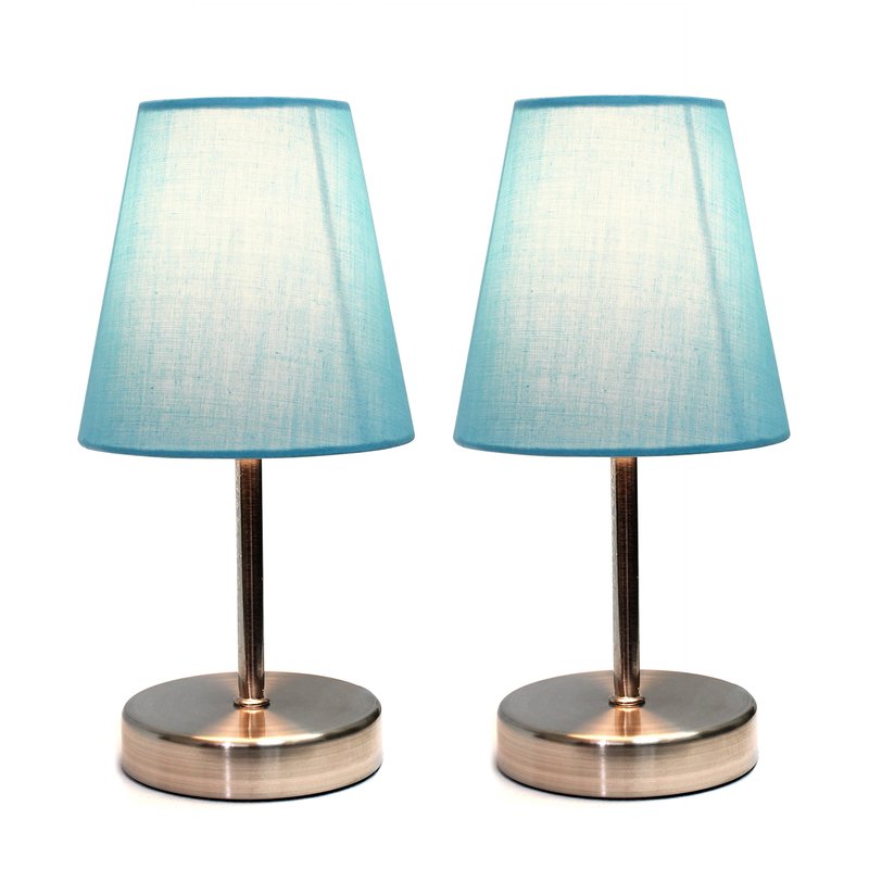 Simple Designs LT2013-BLU-2PK Mini Basic Two Pack Sand Nickel Table Lamp with Fabric Shade Set, Blue, 2 Count