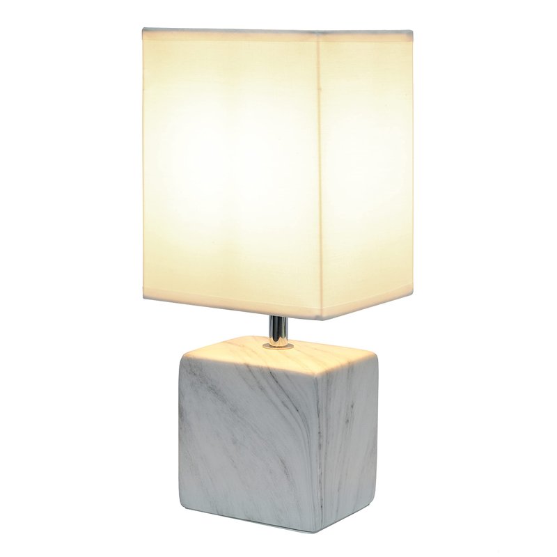 Simple Designs LT2071-WOW White Gray Petite Marbled Ceramic Bedside Mini Table Lamp with White Fabric Shade