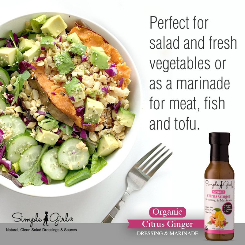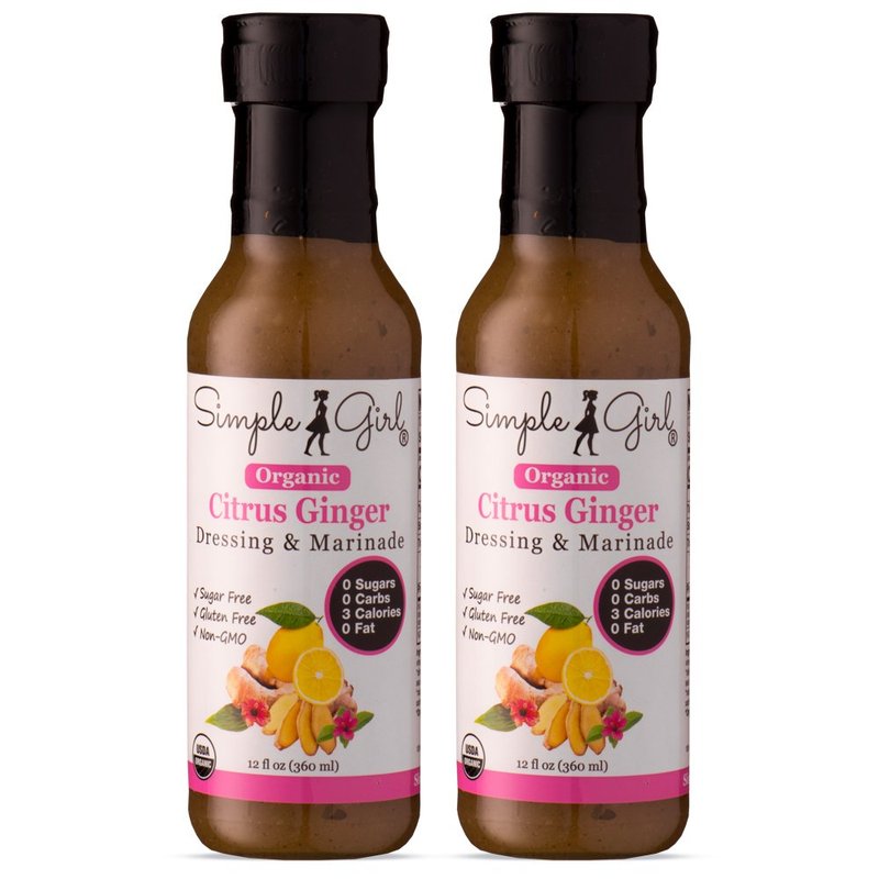 Simple Girl Organic Citrus Ginger Salad Dressing - 2 Bottles - 12oz - Sugar Free - Certified Organic - Kosher - Gluten Free - Vegan - No Carb - Fat Free - Compatible with Most Sugar Free Diet Plans