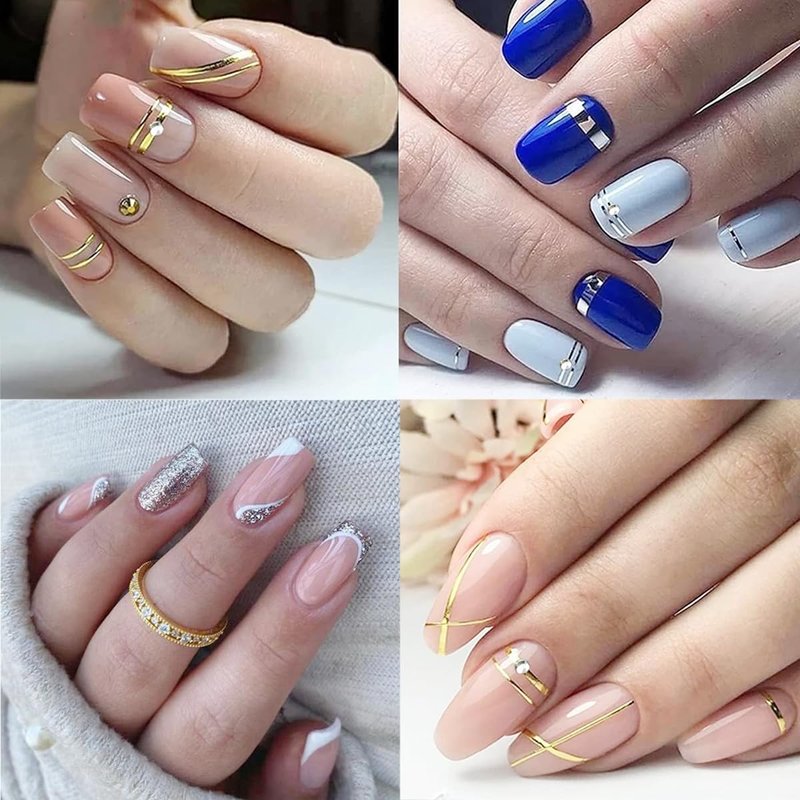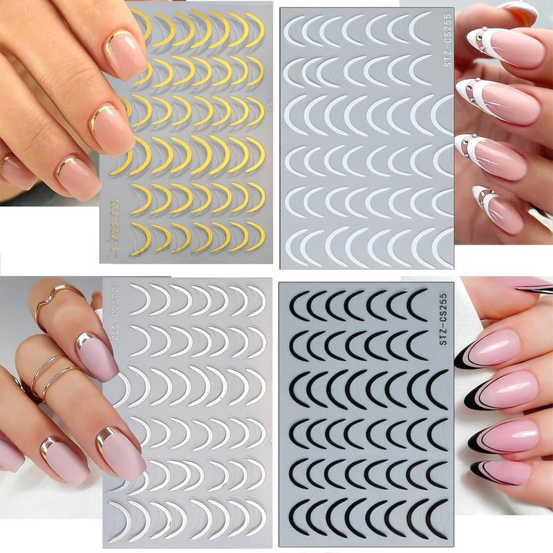 - 【Easy to Use】French lines nail art decoration for acrylic nail is self-adhesive and requires no glue, just remove sticker then stick this 3d nail stickers on your nail. Apply top coat gel to seal to make the stickers last longer.