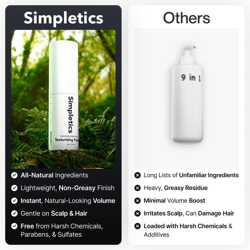 Simpletics Texturizing Powder - All Natural, 4 Ingredient Nourishing Formula with Rice Starch - Chemical Free - Gives Volumized, Texturized, Matte Finish to Men & Women