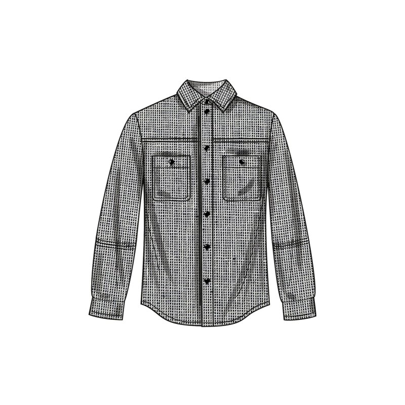 - Misses' and men's easy to sew shirt has banded or pointed collar, long sleeves with cuff, front and back yoke, and front patch pockets with button closure
