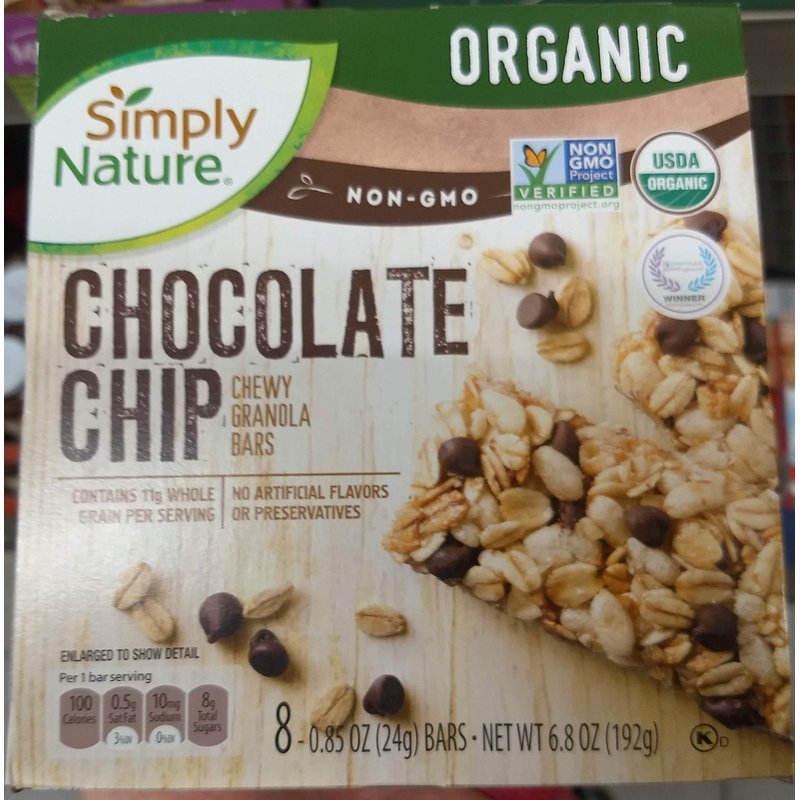 Simply Nature Organic Chocolate Chip Chewy Granola Bars 6.8oz(0.8oz x 8bars), Pack of 1
