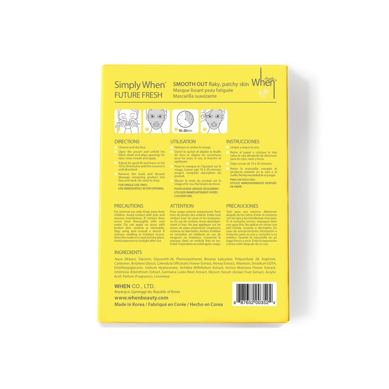 - Simply When Future Fresh mask sheet is infused with high quality gentle essence formulated with Betaine Salicylate to help gently exfoliate, and Honey Extract to help attract and retain moisture and smooth out dry, rough skin. The essence also contains Sodium Hyaluronate (fine hyaluronic acid) to protect your skin and aid hydration.